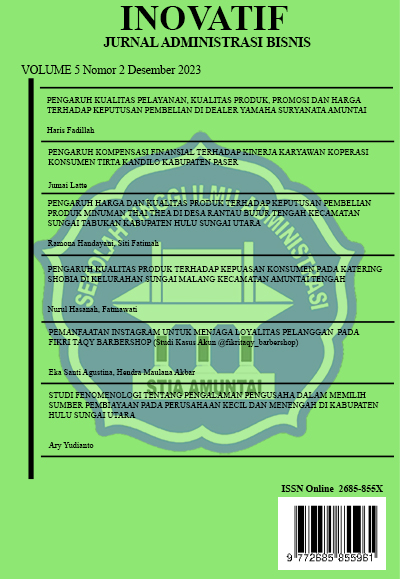 Penelitian ini bertujuan untuk mengeksplorasi pengalaman pengusaha dalam memilih sumber pembiayaan pada perusahaan kecil dan menengah (PKM) di Kabupaten Hulu Sungai Utara. Metode penelitian yang digunakan adalah studi fenomenologi dengan teknik wawancara mendalam terhadap 10 orang pengusaha PKM di Kabupaten Hulu Sungai Utara. Hasil penelitian menunjukkan bahwa mayoritas pengusaha membutuhkan pembiayaan untuk meningkatkan produksi, memperluas jaringan pemasaran, dan meningkatkan infrastruktur perusahaan. Sumber pembiayaan yang digunakan bervariasi, termasuk modal sendiri, pinjaman bank, investasi dari keluarga atau teman, dan skema pembiayaan pemerintah. Beberapa faktor dipertimbangkan dalam memilih sumber pembiayaan, seperti suku bunga, jangka waktu pinjaman, persyaratan dan prosedur pinjaman, keamanan dan ketersediaan dana, serta reputasi institusi pembiayaan. Namun, para pengusaha menghadapi tantangan dalam mendapatkan pembiayaan karena persyaratan yang sulit, proses yang lama, dan suku bunga yang tinggi. Mereka juga mengalami tantangan dalam mengelola pembiayaan, seperti mengatur pengeluaran, menghindari keterlambatan pembayaran, dan memastikan keberlanjutan bisnis mereka.